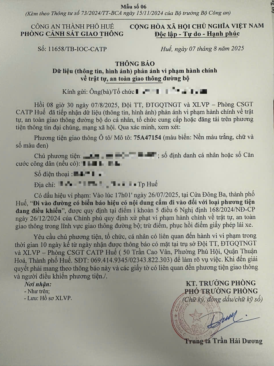 Vấn đề quý Ông/Bà phản ánh, Phòng Cảnh sát giao thông – Công an thành phố Huế đã kiểm tra và xin thông báo kết quả như sau:
