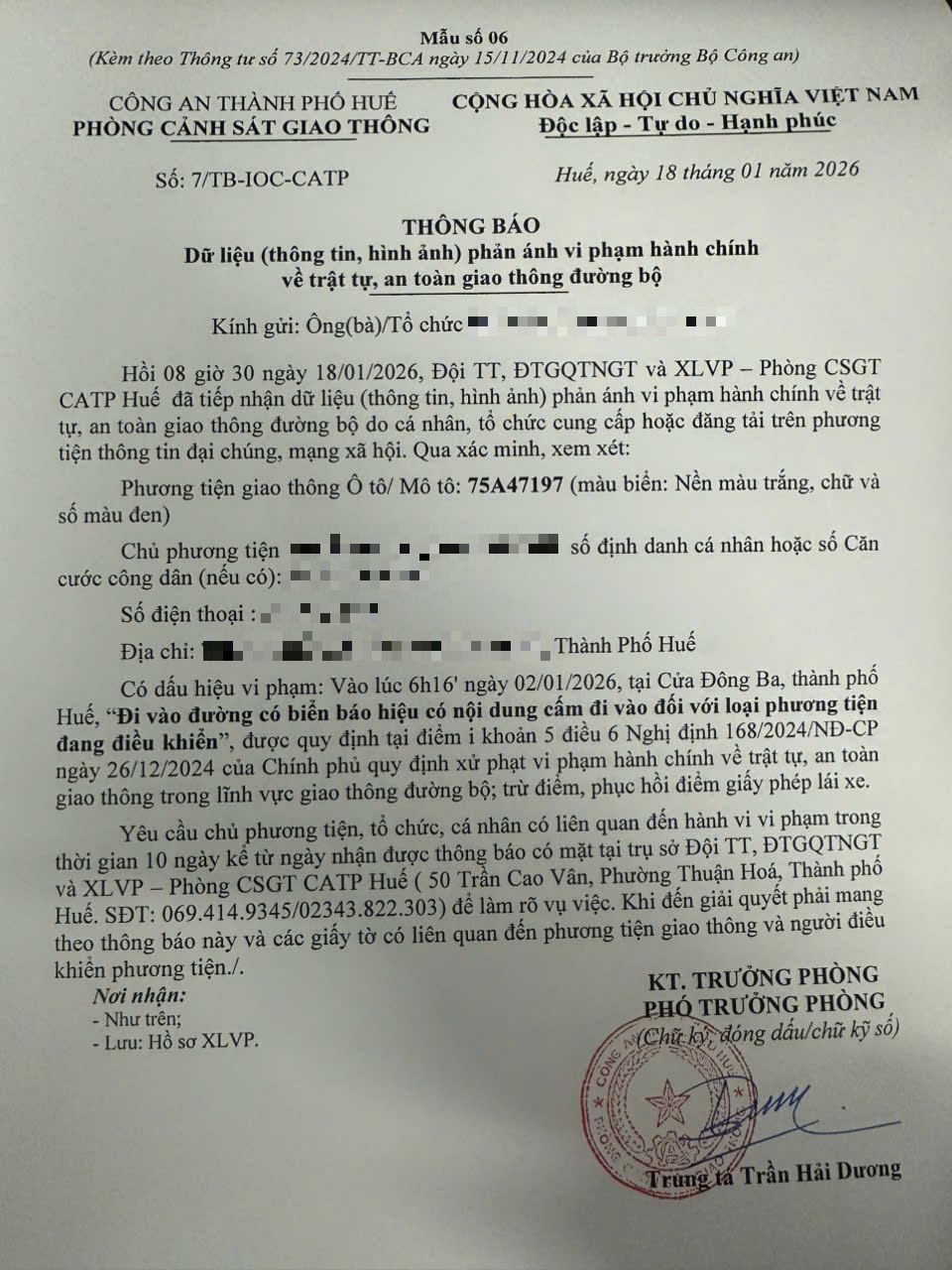 Vấn đề quý Ông/Bà phản ánh, Phòng Cảnh sát giao thông – Công an thành phố Huế đã kiểm tra và xin thông báo kết quả như sau: