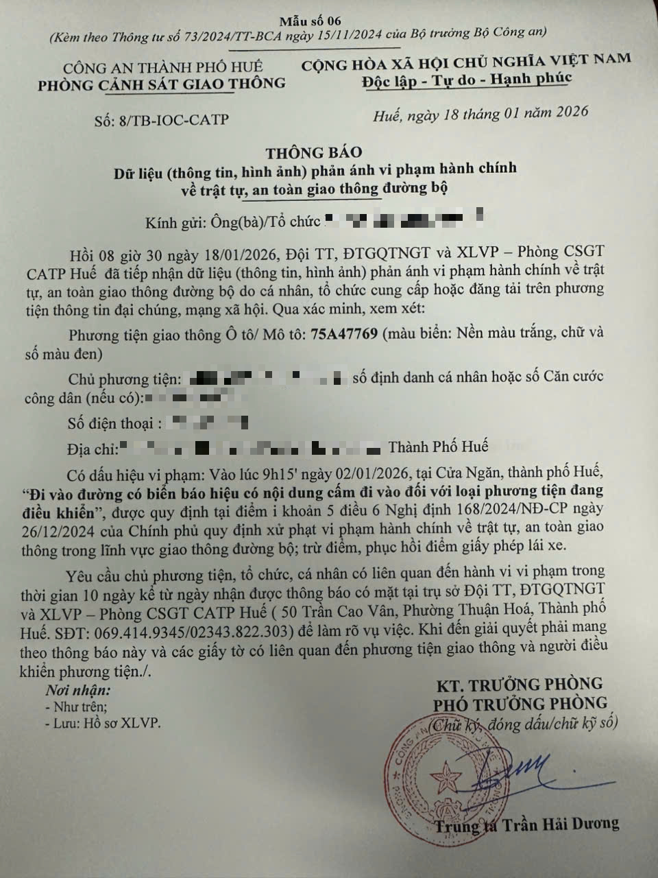 Vấn đề quý Ông/Bà phản ánh, Phòng Cảnh sát giao thông – Công an thành phố Huế đã kiểm tra và xin thông báo kết quả như sau: