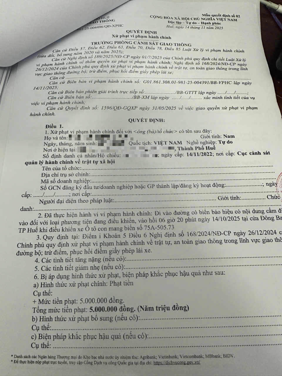 Phòng Cảnh sát giao thông cập nhật Quyết định xử phạt (Đính kèm QĐ).