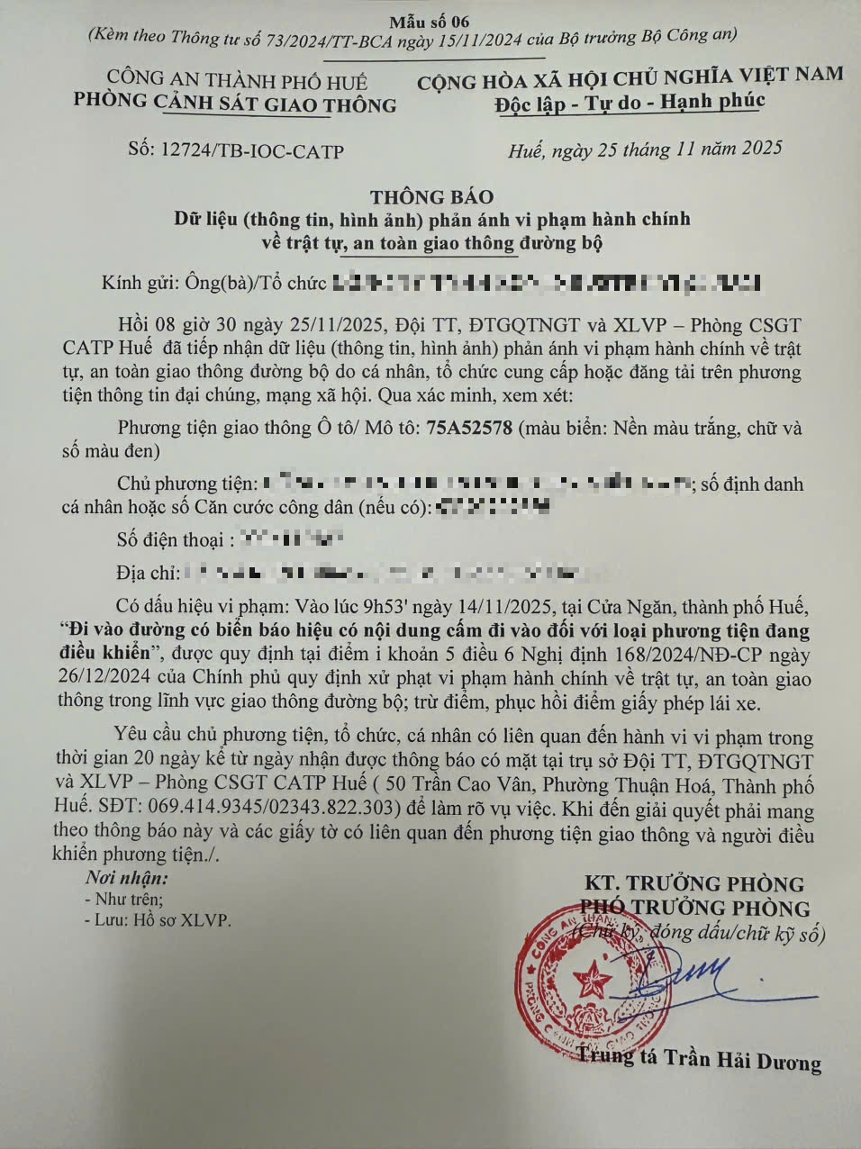 Vấn đề quý Ông/Bà phản ánh, Phòng Cảnh sát giao thông – Công an thành phố Huế đã kiểm tra và xin thông báo kết quả như sau: