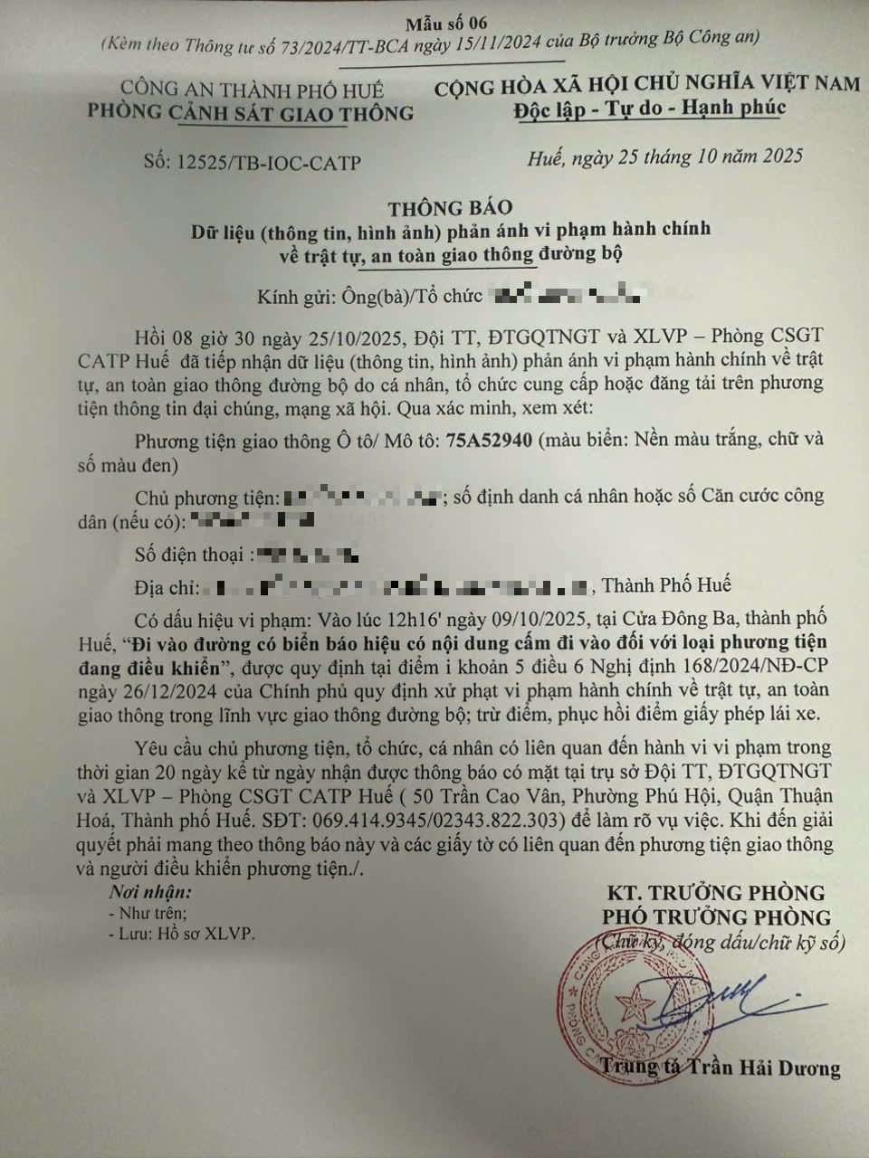 Vấn đề quý Ông/Bà phản ánh, Phòng Cảnh sát giao thông – Công an thành phố Huế đã kiểm tra và xin thông báo kết quả như sau: