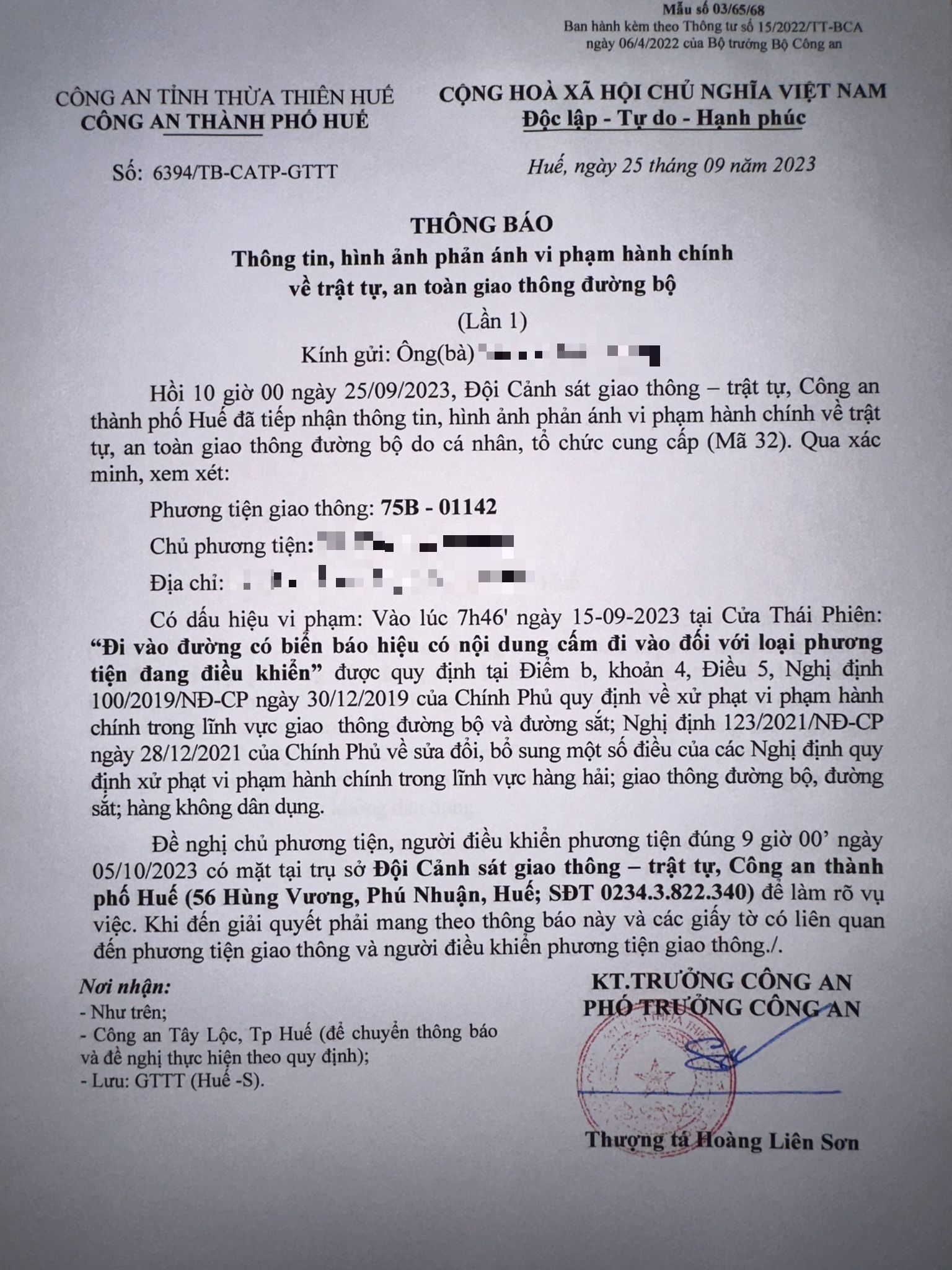 Vấn đề quý Ông/Bà phản ánh, Công an tỉnh đã chỉ đạo Công an thành phố Huế kiểm tra và xin thông báo kết quả như sau: