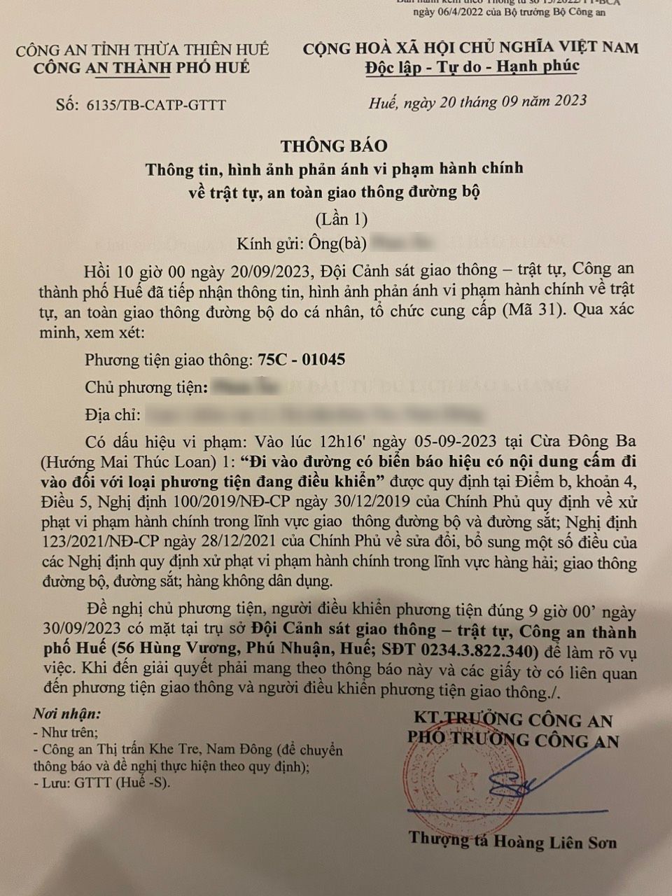 Vấn đề quý Ông/Bà phản ánh, Công an tỉnh đã chỉ đạo Công an thành phố Huế kiểm tra và xin thông báo kết quả xử lý như sau: