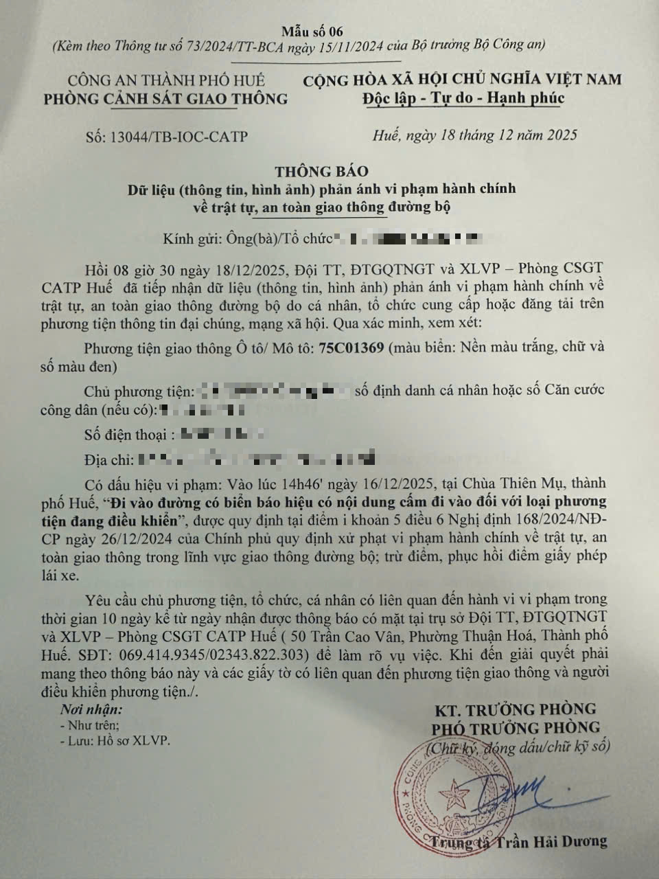 Vấn đề quý Ông/Bà phản ánh, Phòng Cảnh sát giao thông – Công an thành phố Huế đã kiểm tra và xin thông báo kết quả như sau: