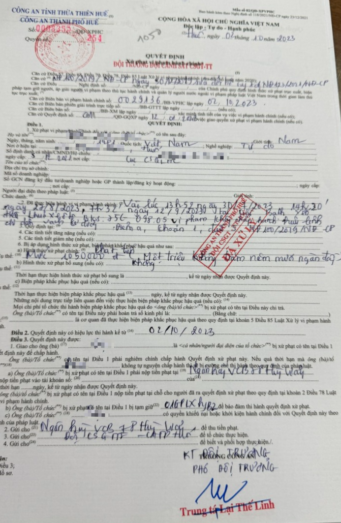 Công an thành phố ra Quyết định xử phạt tiền 350.000đ. (Đính kèm QĐ)