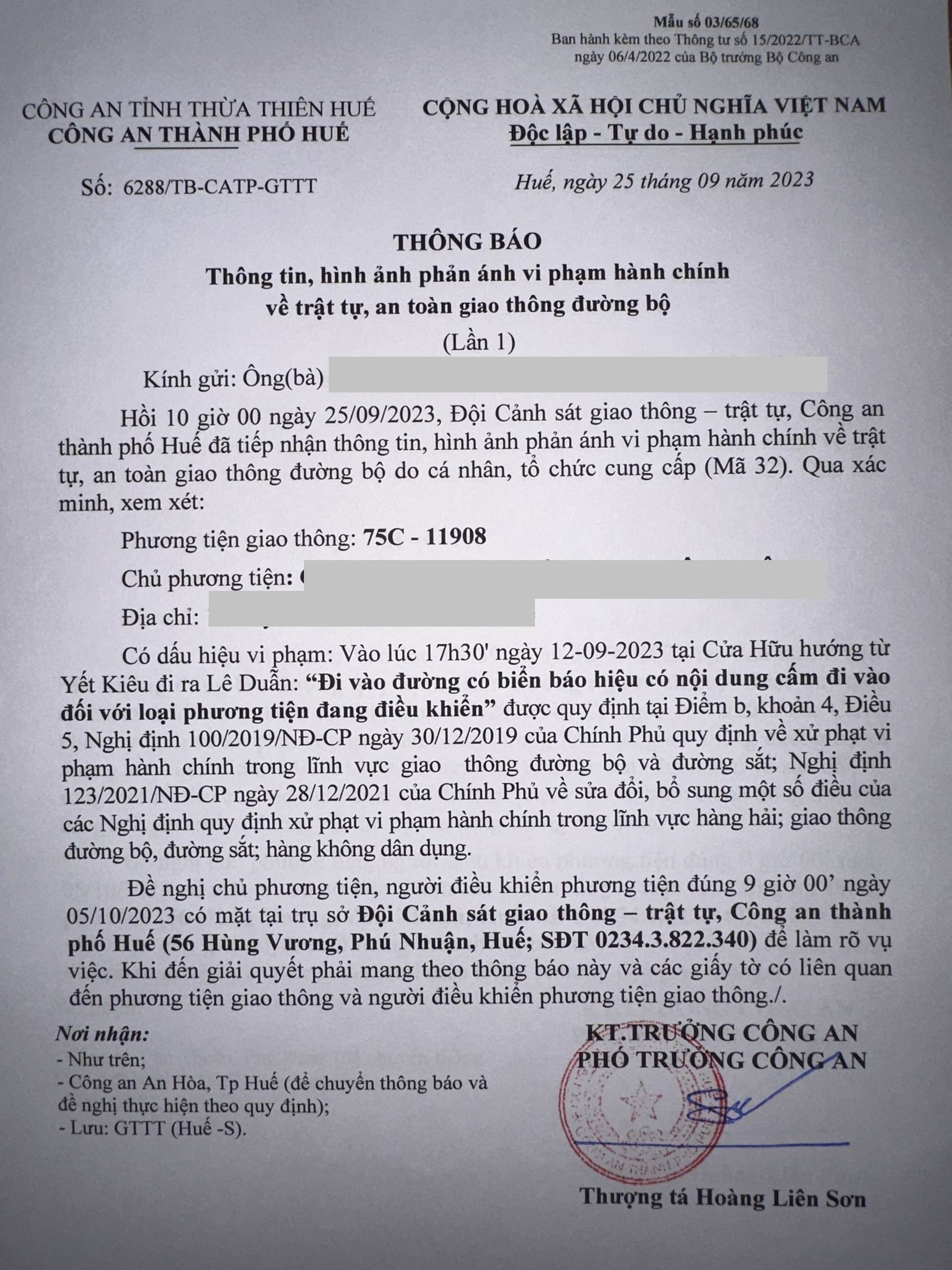 Vấn đề quý Ông/Bà phản ánh, Công an tỉnh đã chỉ đạo Công an thành phố Huế xác minh và xin thông báo kết quả như sau: