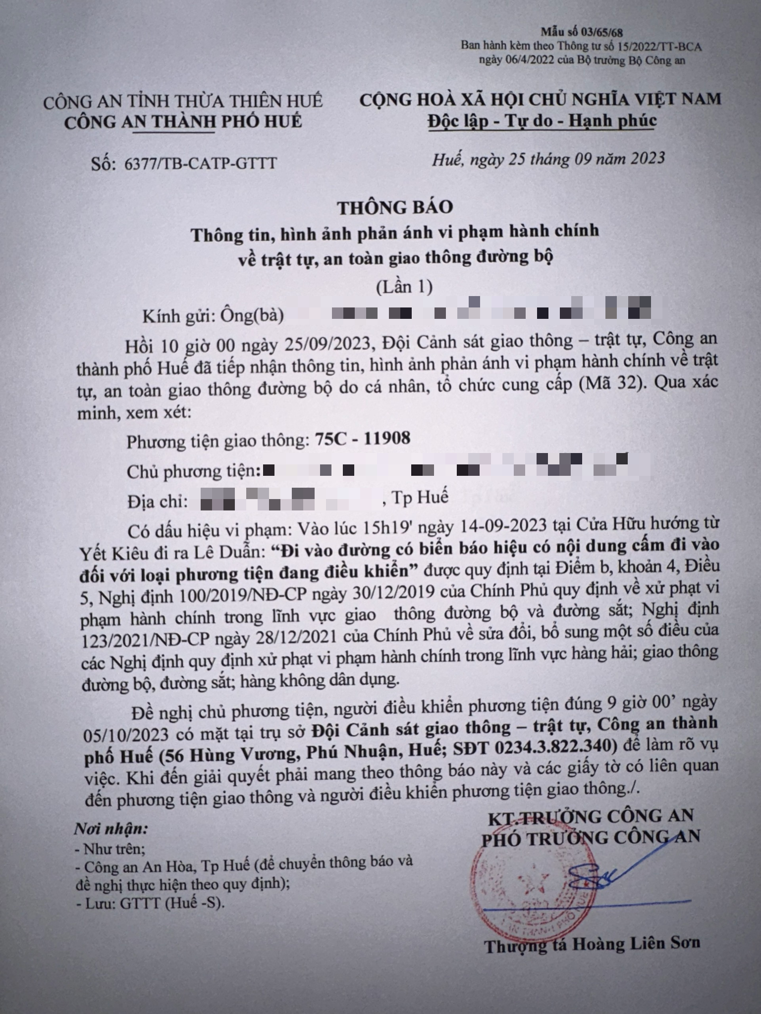 Vấn đề quý Ông/Bà phản ánh, Công an tỉnh đã chỉ đạo Công an thành phố Huế xác minh và xin thông báo kết quả như sau: