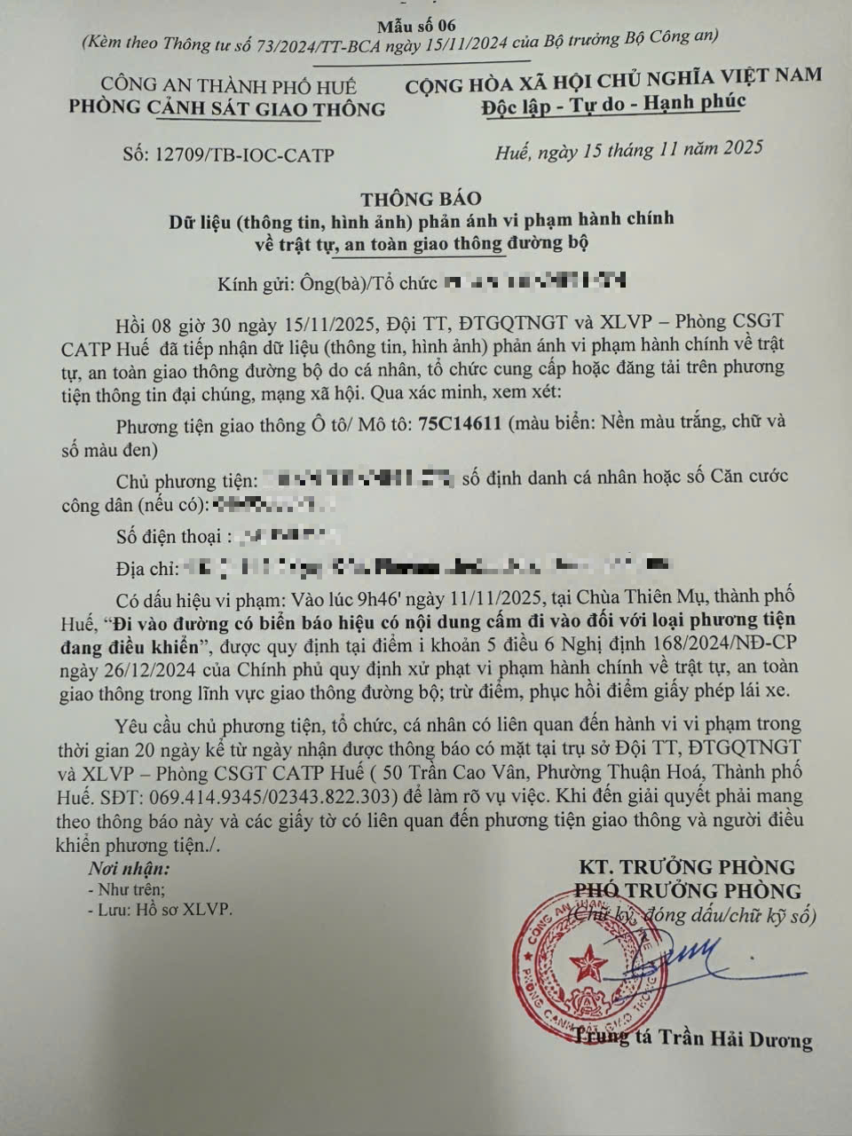 Vấn đề quý Ông/Bà phản ánh, Phòng Cảnh sát giao thông – Công an thành phố Huế đã kiểm tra và xin thông báo kết quả như sau: