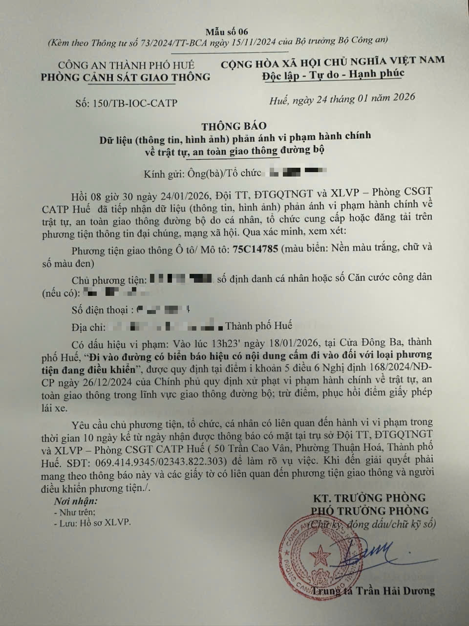 Vấn đề quý Ông/Bà phản ánh, Phòng Cảnh sát giao thông – Công an thành phố Huế đã kiểm tra và xin thông báo kết quả như sau: