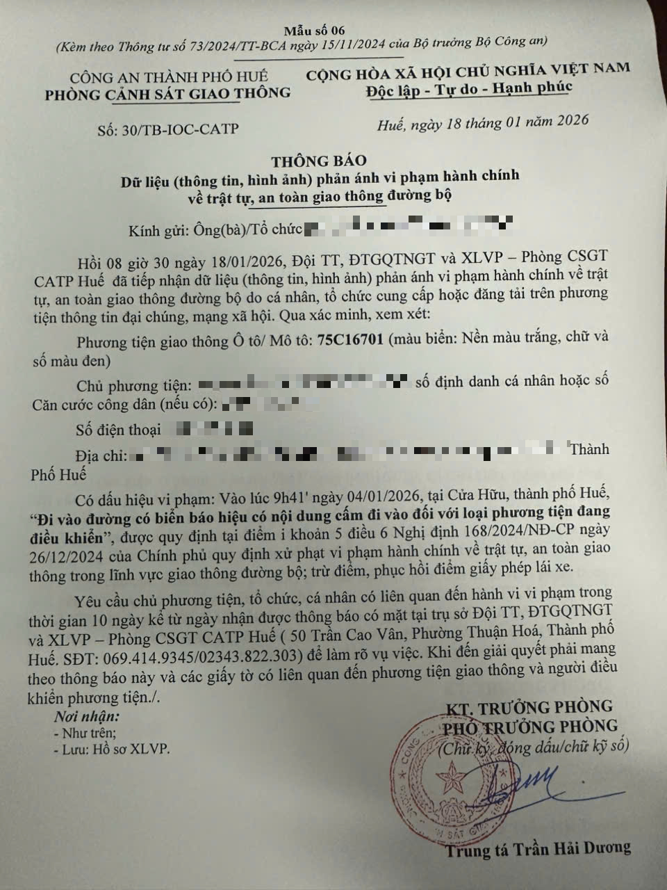 Vấn đề quý Ông/Bà phản ánh, Phòng Cảnh sát giao thông – Công an thành phố Huế đã kiểm tra và xin thông báo kết quả như sau: