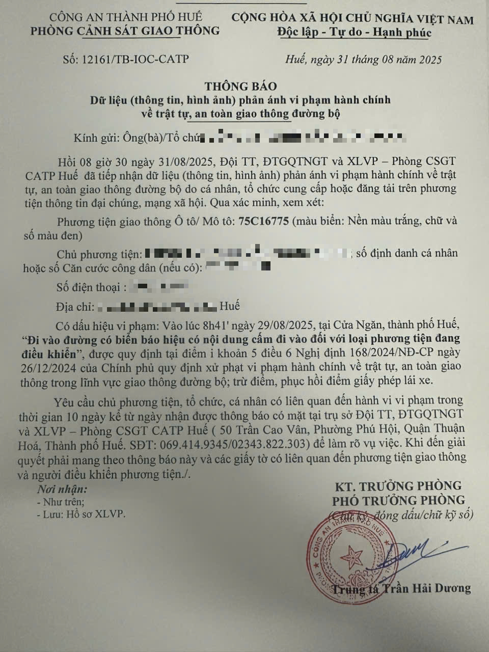 Vấn đề quý Ông/Bà phản ánh, Phòng Cảnh sát giao thông – Công an thành phố Huế đã kiểm tra và xin thông báo kết quả như sau: