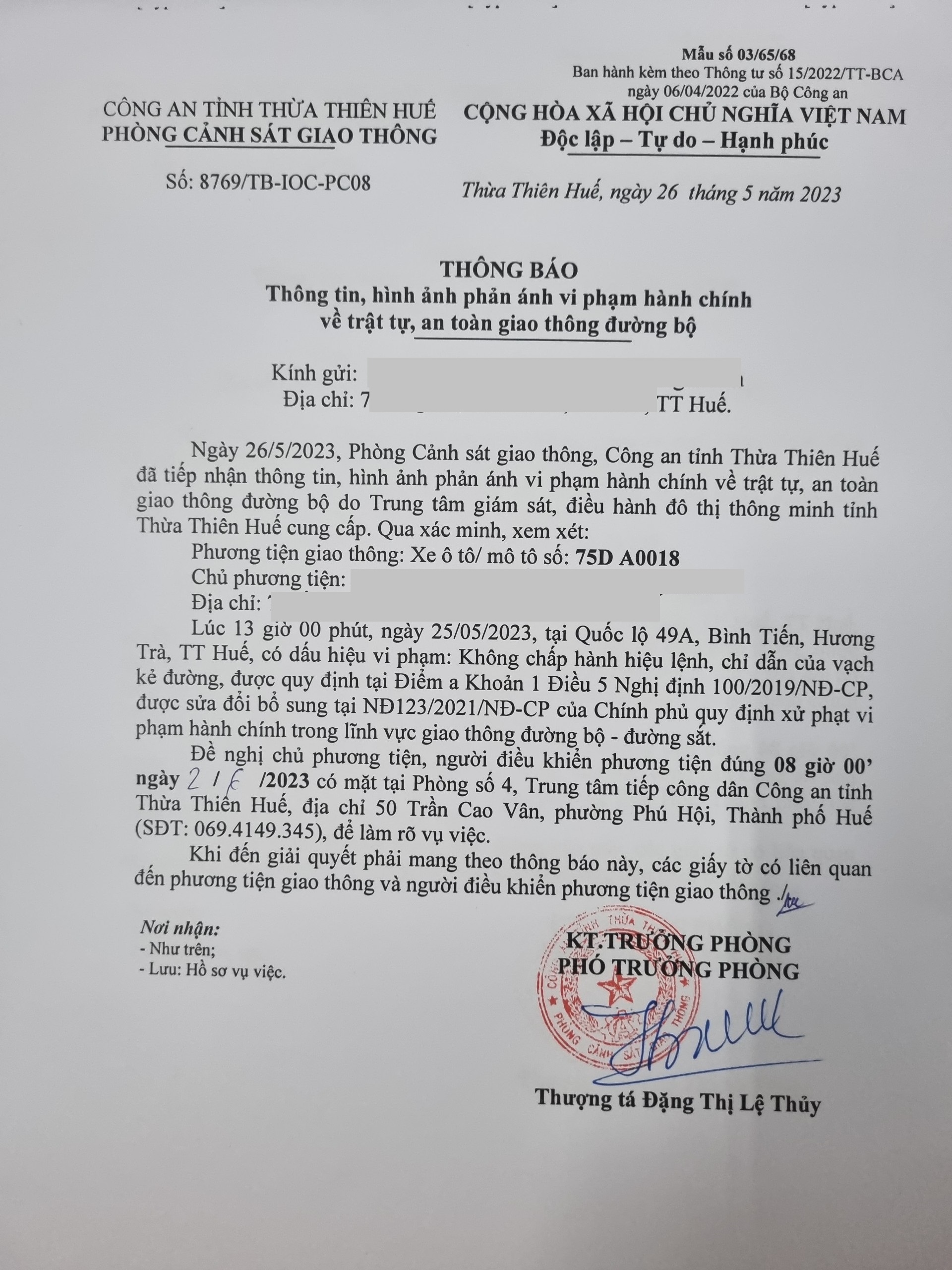 Vấn đề Ông/Bà phản ánh, Công an tỉnh đã chỉ đạo Phòng Cảnh sát giao thông kiểm tra và xin thông báo kết quả xử lý như sau:
