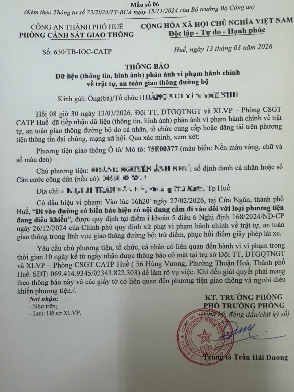 Vấn đề quý Ông/Bà phản ánh, Phòng Cảnh sát giao thông – Công an thành phố Huế đã kiểm tra và xin thông báo kết quả như sau:
