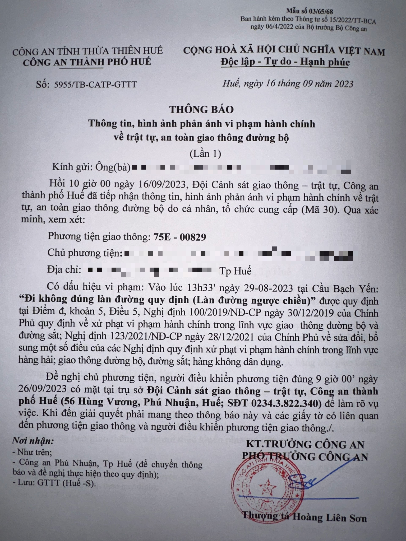 Vấn đề Ông/Bà phản ánh, Công an tỉnh đã chỉ đạo Công an thành phố Huế xin thông báo kết quả xử lý như sau: