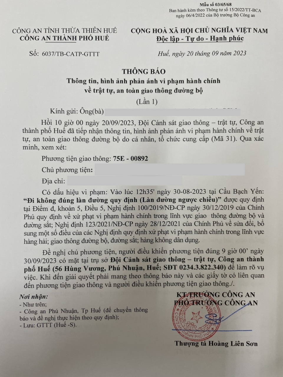 Vấn đề Ông/Bà phản ánh, Công an tỉnh đã chỉ đạo Công an thành phố Huế xin thông báo kết quả xử lý như sau: