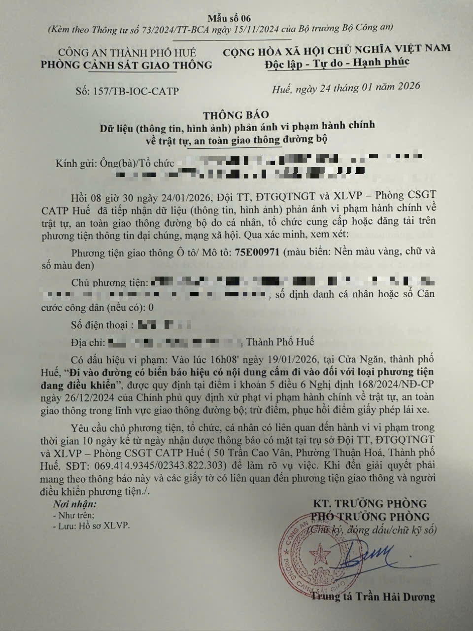 Vấn đề quý Ông/Bà phản ánh, Phòng Cảnh sát giao thông – Công an thành phố Huế đã kiểm tra và xin thông báo kết quả như sau: