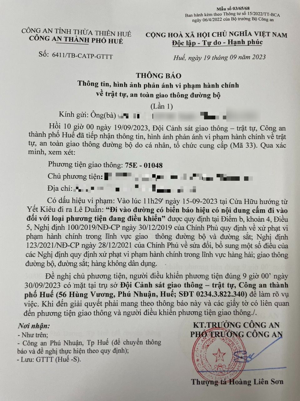 Vấn đề Ông/Bà phản ánh, Công an tỉnh đã chỉ đạo Công an thành phố Huế xác minh và xin thông báo kết quả như sau: