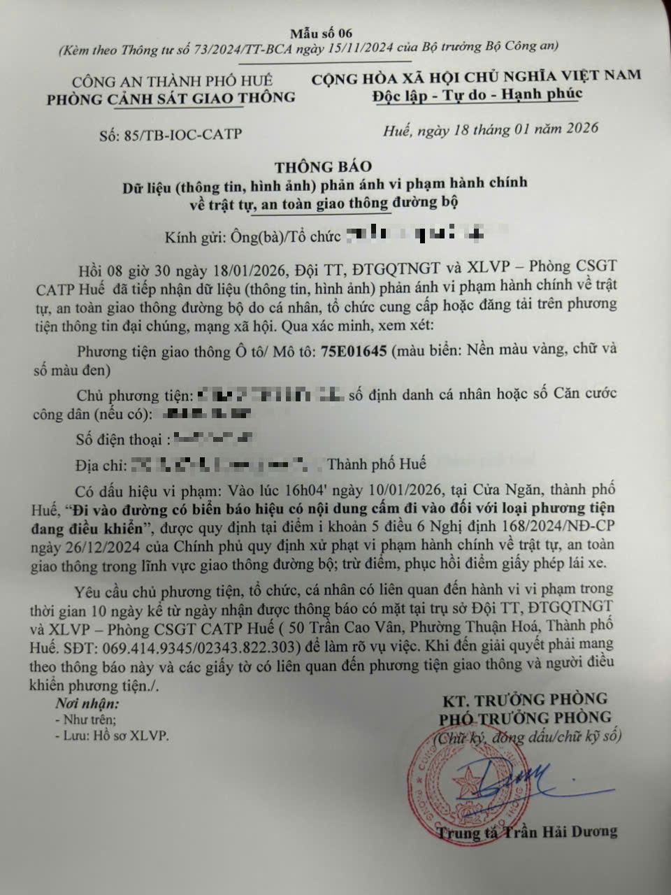 Vấn đề quý Ông/Bà phản ánh, Phòng Cảnh sát giao thông – Công an thành phố Huế đã kiểm tra và xin thông báo kết quả như sau: