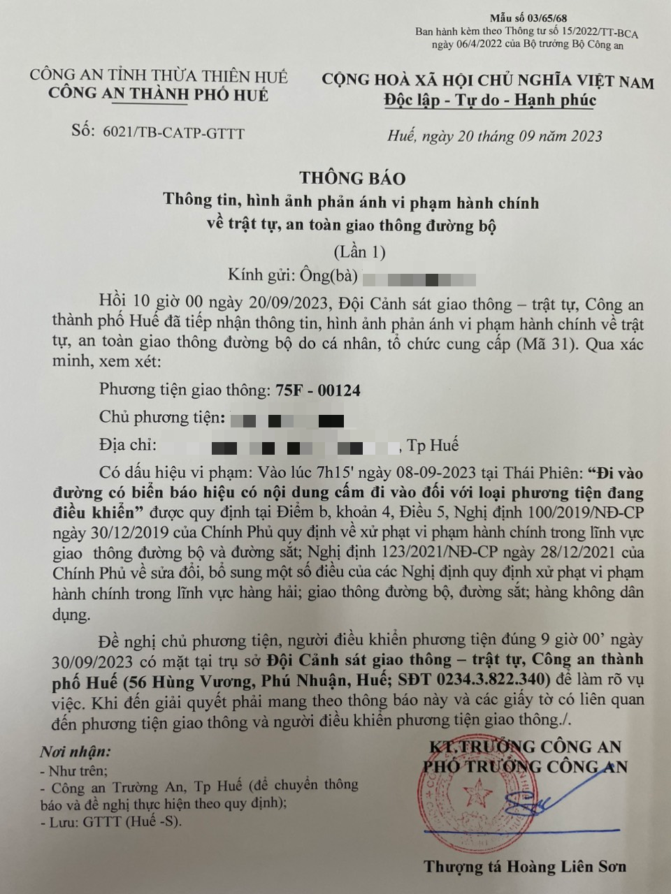 Vấn đề quý Ông/Bà phản ánh, Công an tỉnh đã chỉ đạo Công an thành phố Huế kiểm tra và xin thông báo kết quả như sau: