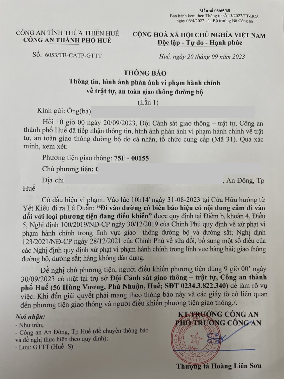Vấn đề Ông/Bà phản ánh, Công an tỉnh đã chỉ đạo Công an thành phố Huế xin thông báo kết quả xử lý như sau: