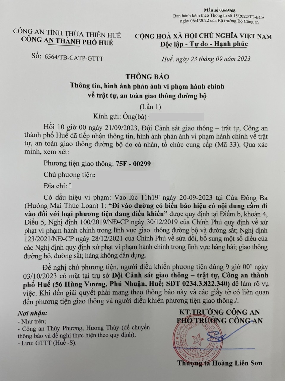 Vấn đề Ông/Bà phản ánh, Công an tỉnh đã chỉ đạo Công an thành phố Huế xác minh và xin thông báo kết quả như sau: