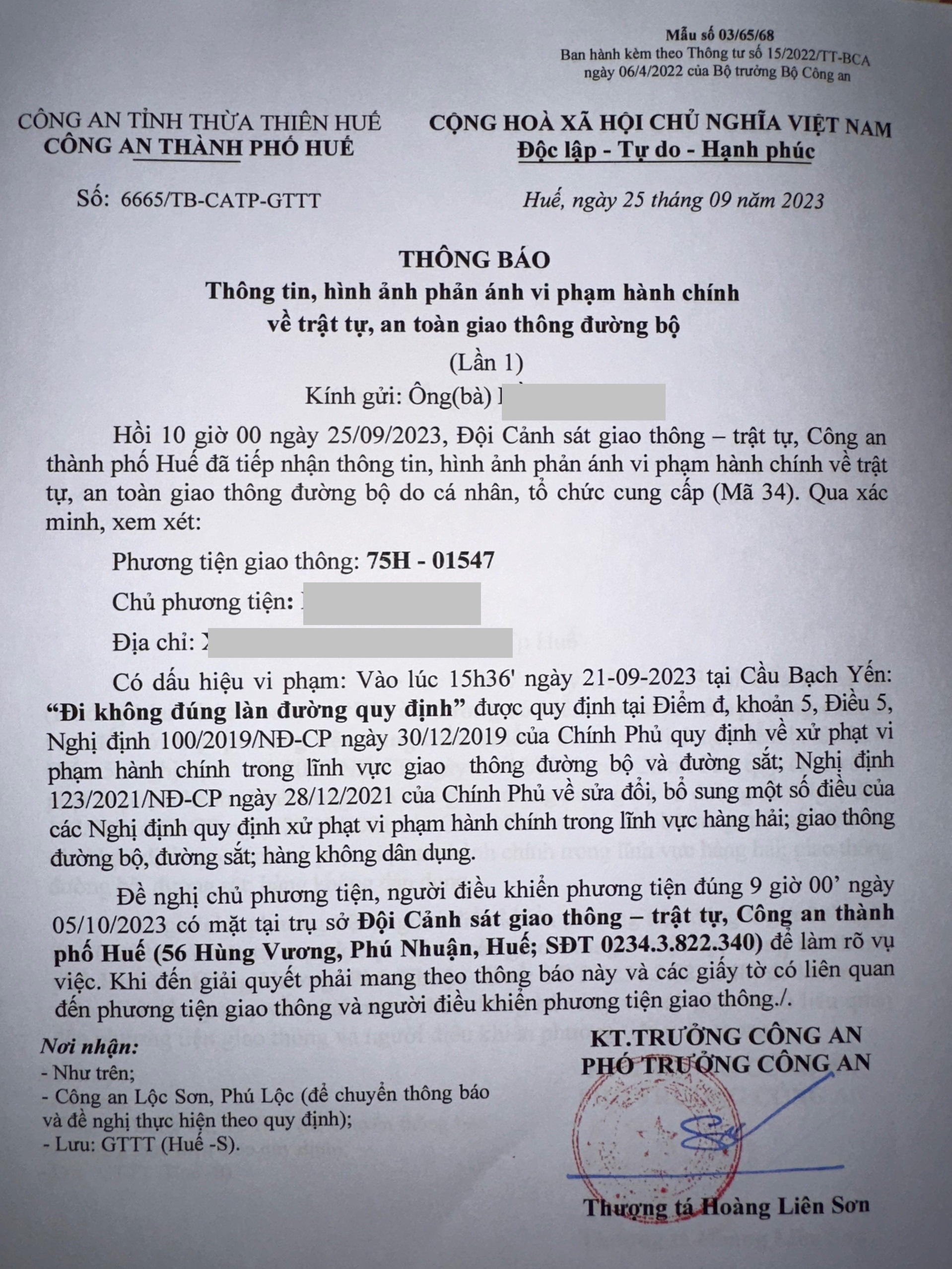 Vấn đề quý Ông/Bà phản ánh, Công an tỉnh đã chỉ đạo Công an thành phố Huế kiểm tra và xin thông báo kết quả như sau: