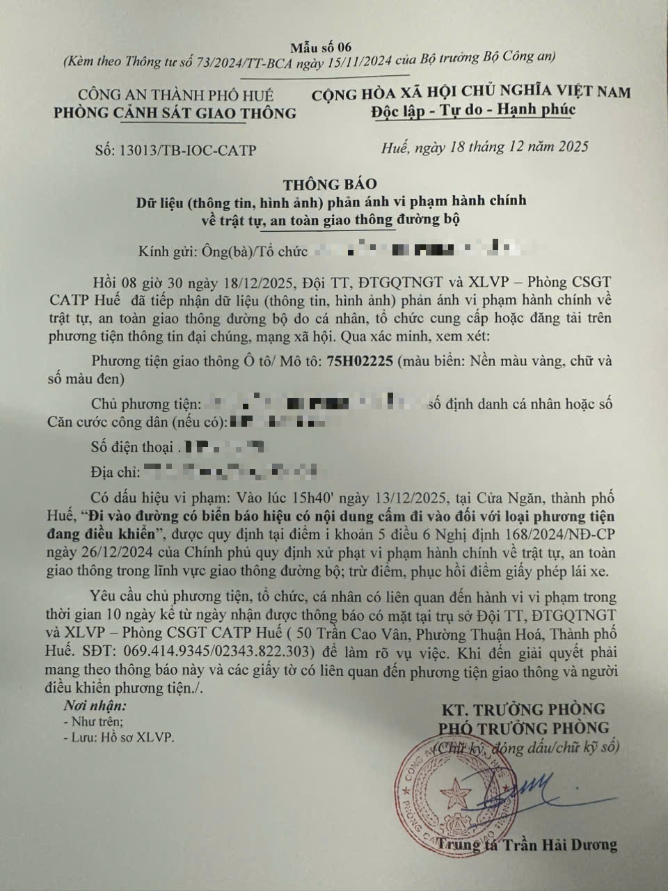 Vấn đề quý Ông/Bà phản ánh, Phòng Cảnh sát giao thông – Công an thành phố Huế đã kiểm tra và xin thông báo kết quả như sau: