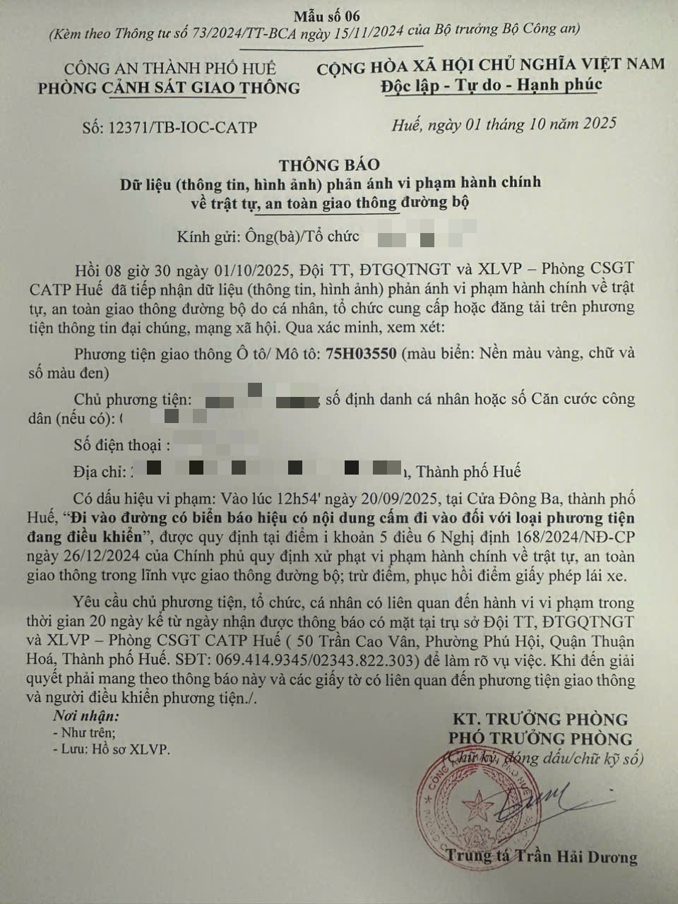 Vấn đề quý Ông/Bà phản ánh, Phòng Cảnh sát giao thông – Công an thành phố Huế đã kiểm tra và xin thông báo kết quả như sau: