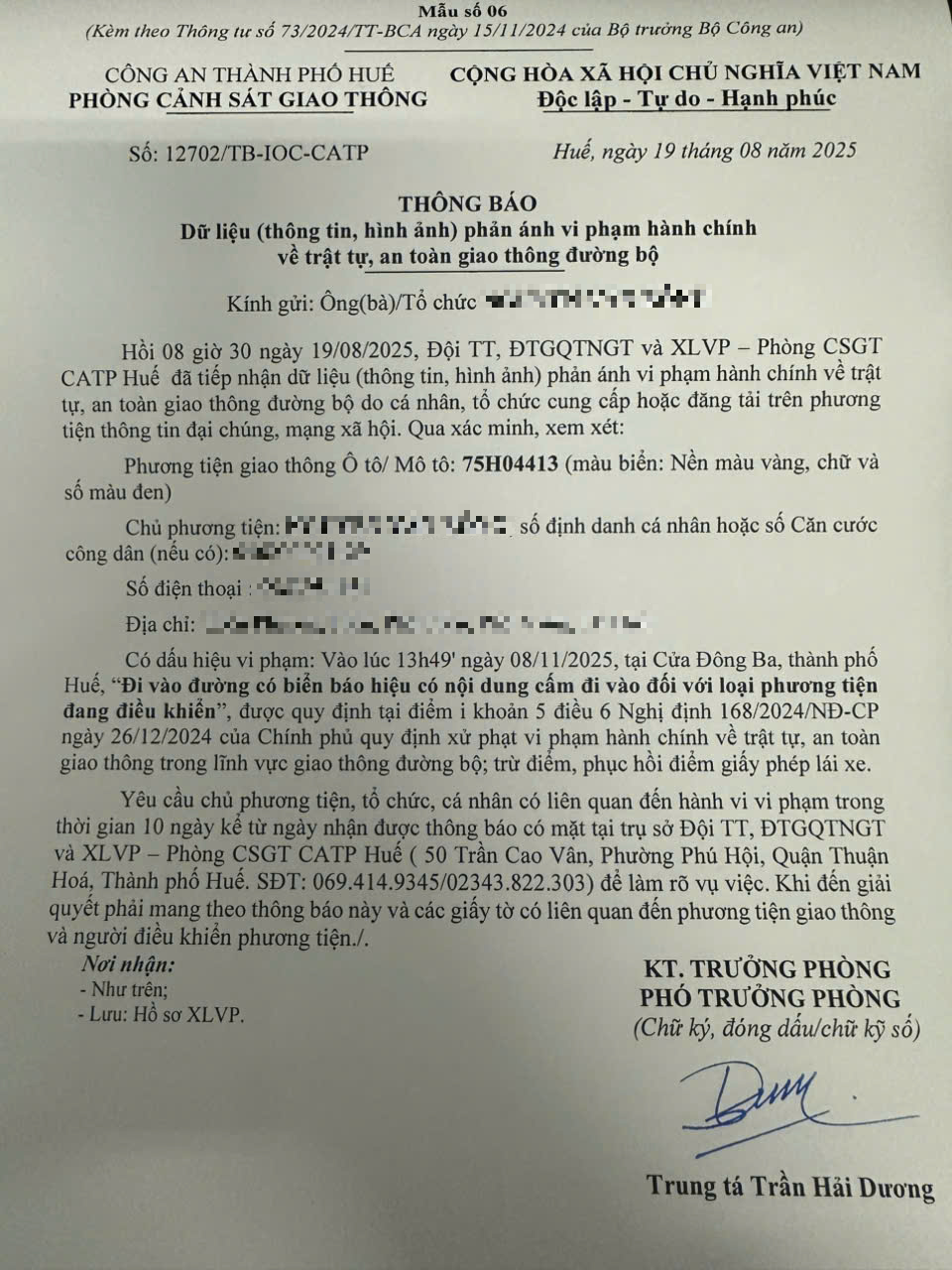 Vấn đề quý Ông/Bà phản ánh, Phòng Cảnh sát giao thông – Công an thành phố Huế đã kiểm tra và xin thông báo kết quả như sau: