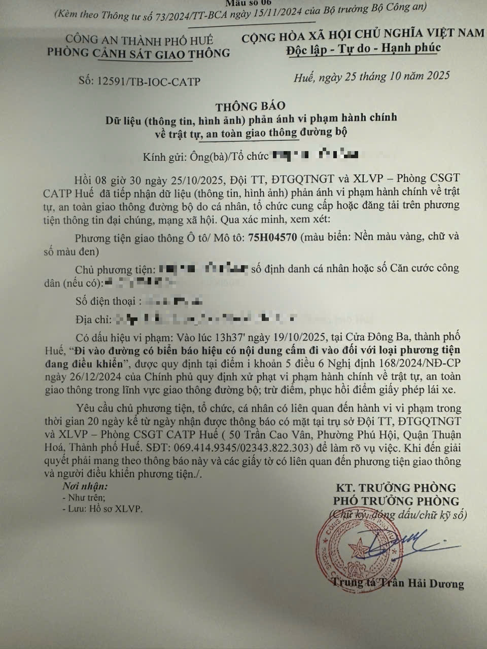 Vấn đề quý Ông/Bà phản ánh, Phòng Cảnh sát giao thông – Công an thành phố Huế đã kiểm tra và xin thông báo kết quả như sau: