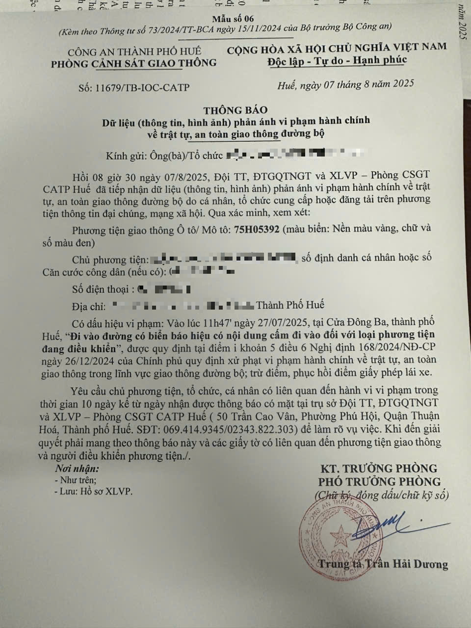 Vấn đề quý Ông/Bà phản ánh, Phòng Cảnh sát giao thông – Công an thành phố Huế đã kiểm tra và xin thông báo kết quả như sau: