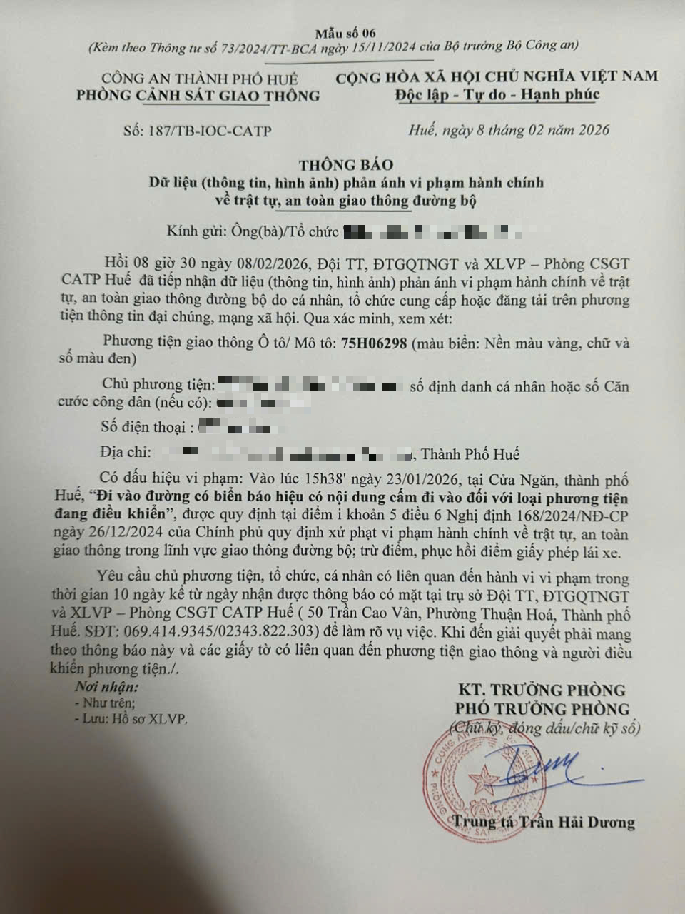 Qua hình ảnh phản ánh, người điều khiển phương tiện BKS 75H06298 có dấu hiệu vi phạm lỗi: Đi vào đường có biển báo hiệu có nội dung cấm đi vào đối với loại phương tiện đang điều khiển, quy định tại điểm i, khoản 5, điều 6 Nghị định số 168/2024/NĐ-CP ngày 26/12/2024 của Chính phủ quy định xử phạt vi phạm hành chính về trật tự, an toàn giao thông trong lĩnh vực giao thông đường bộ; trừ điểm, phục hồi điểm giấy phép lái xe.