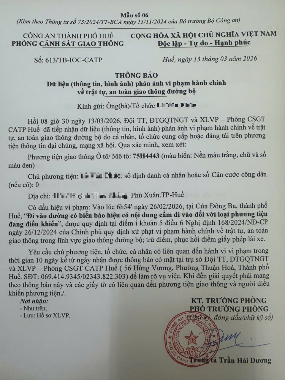 Vấn đề quý Ông/Bà phản ánh, Phòng Cảnh sát giao thông – Công an thành phố Huế đã kiểm tra và xin thông báo kết quả như sau: