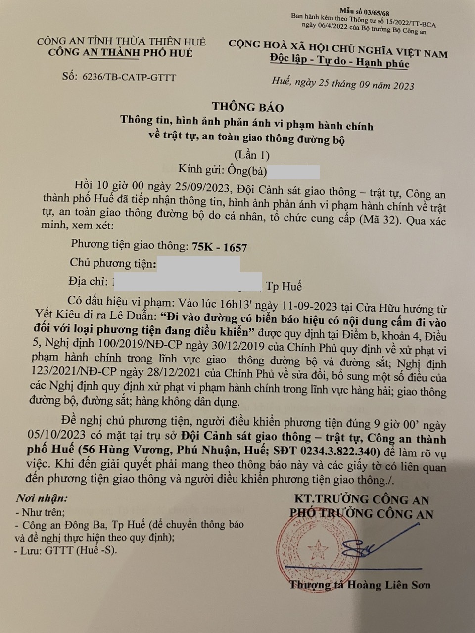 Vấn đề quý Ông/Bà phản ánh, Công an tỉnh đã chỉ đạo Công an thành phố Huế xác minh và xin thông báo kết quả như sau: