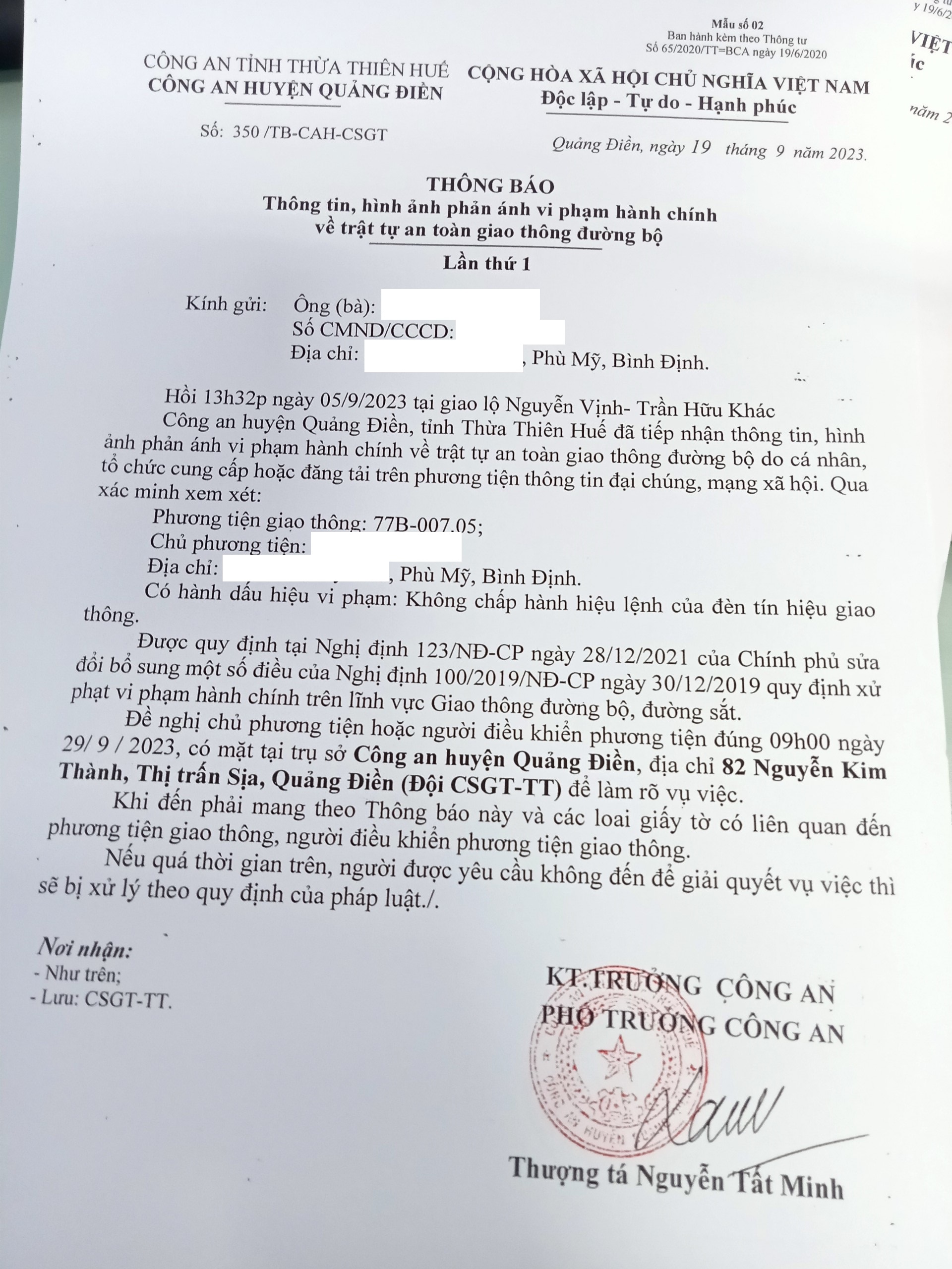 Vấn đề quý Ông/Bà phản ánh, Công an tỉnh đã chỉ đạo Công an huyện Quảng Điền xin thông báo kết quả xử lý như sau: