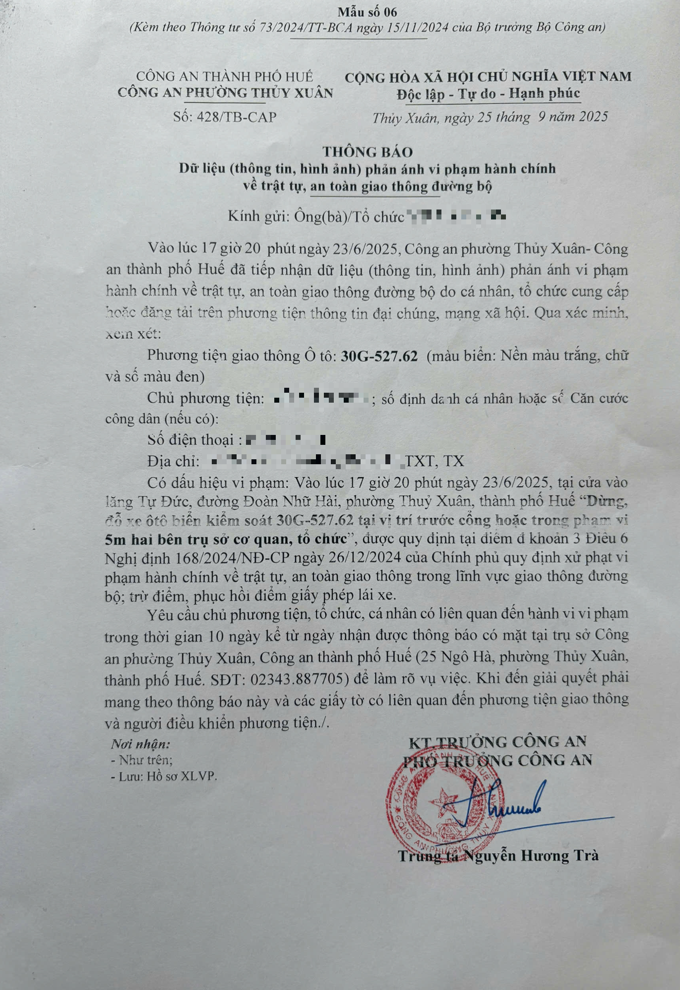 Sau khi nhận được phản ánh, Công an phường đã tiến hành xác minh chủ phường tiện 30G52762 và đã gửi Thông báo dữ liệu phản ánh vi phạm hành chính về trật tự an toàn giao thông đường bộ. Đồng thời, yêu cầu chủ phương tiện liện hệ với Công an phường để làm rõ sự việc và xử lý theo quy định của pháp luật. (Thông báo kèm theo)