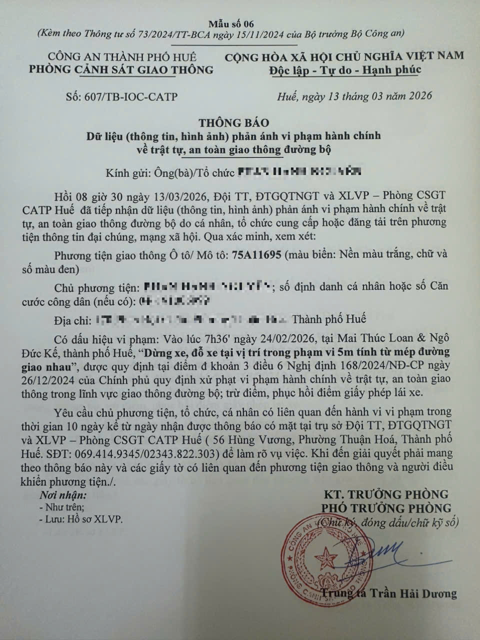 Qua hình ảnh phản ánh, người điều khiển phương tiện BKS 75A11695 có dấu hiệu vi phạm lỗi: “Dừng xe, đỗ xe tại vị trí trong phạm vi 5m tính từ mép đường giao nhau”, quy định tại điểm đ, khoản 3, điều 6 Nghị định 168/2024/NĐ-CP.