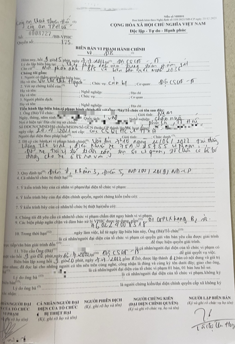 Tại cơ quan, chủ phương tiện đã xem hình ảnh, công nhận vi phạm lỗi: Đỗ xe trước cổng trụ sở cơ quan, tổ chức có bố trí đường cho xe ô tô ra, vào (quy định tại điểm đ, Khoản 3, Điều 5 Nghị định 100/2019/NĐ-CP; sửa đổi, bổ sung tại Nghị định 123/2021/NĐ-CP), đồng thời cam kết không tái phạm.