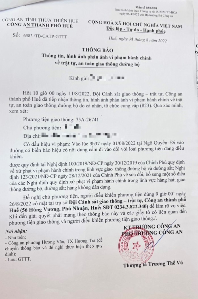Vấn đề Ông/Bà phản ánh, Công an tỉnh đã chỉ đạo Công an thành phố Huế xin thông báo kết quả xử lý như sau: