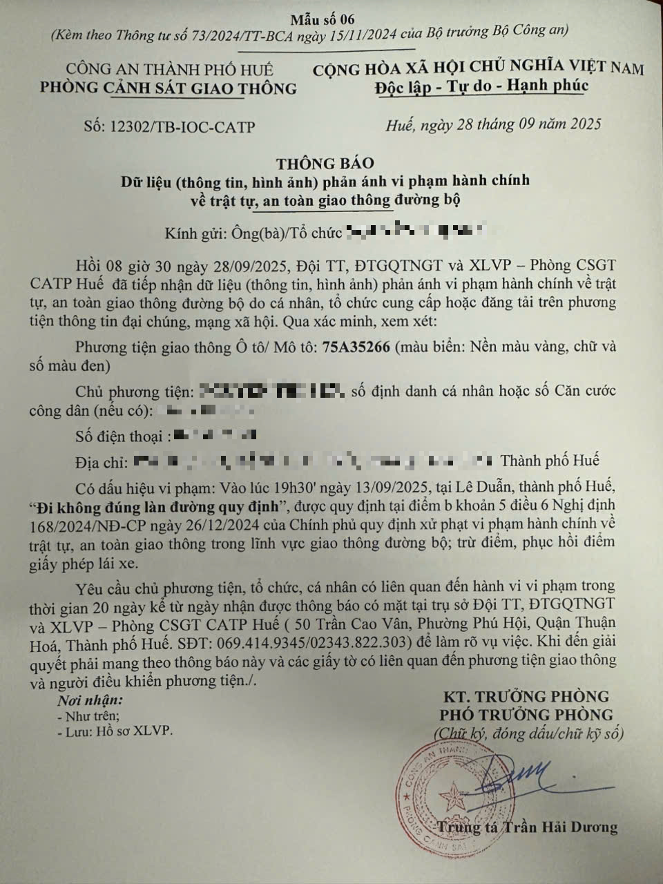 Vấn đề quý Ông/Bà phản ánh, Công an thành phố Huế đã chỉ đạo Phòng Cảnh sát giao thông kiểm tra và xin thông báo kết quả như sau: