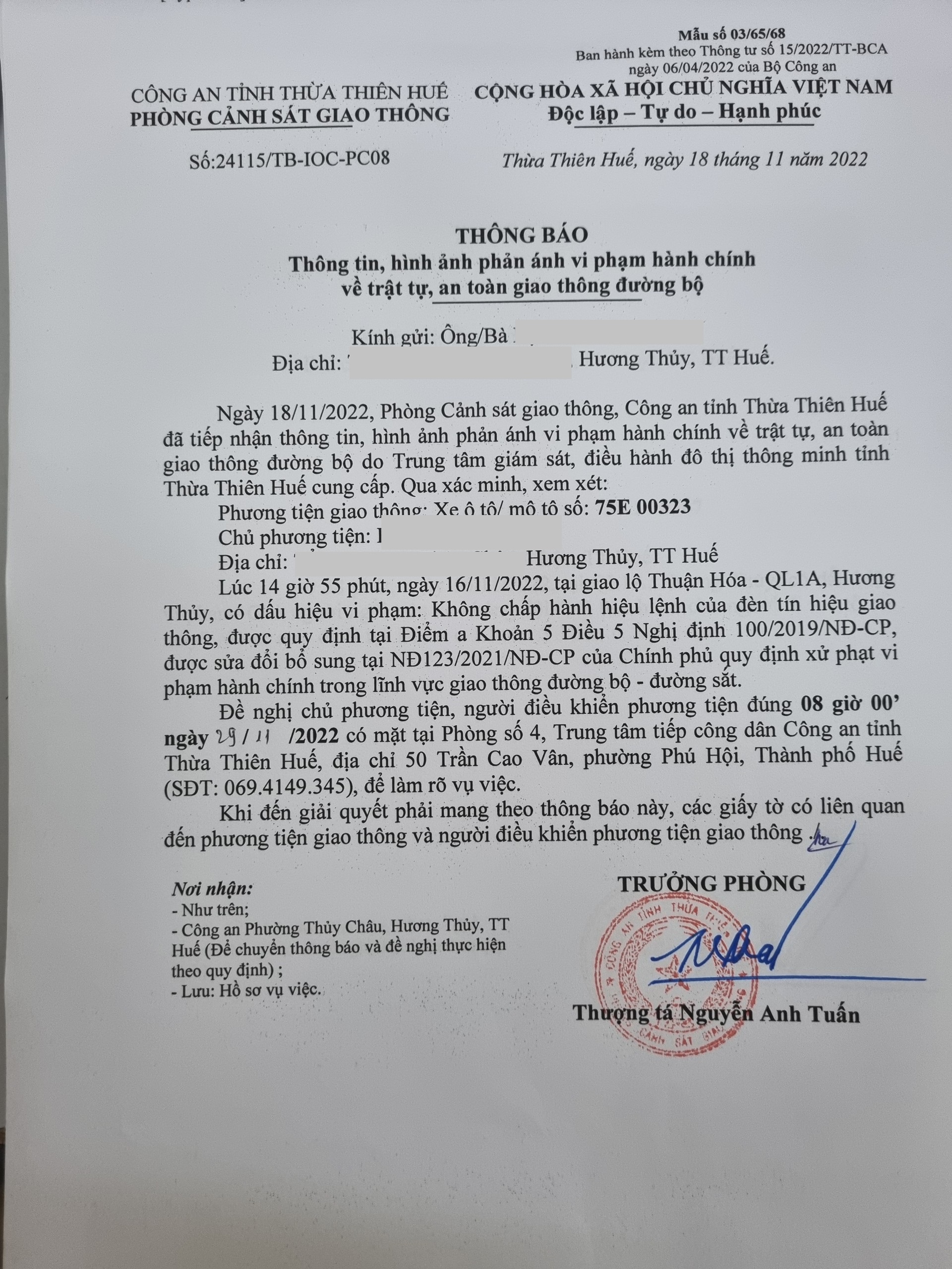 Vấn đề Ông/Bà phản ánh, Công an tỉnh đã chỉ đạo Phòng Cảnh sát giao thông kiểm tra và xin thông báo kết quả xử lý như sau: