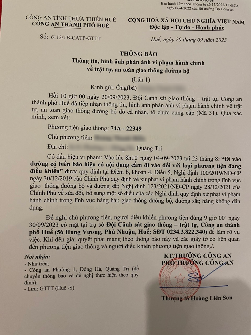Vấn đề Ông/Bà phản ánh, Công an tỉnh đã chỉ đạo Công an thành phố Huế xin thông báo kết quả xử lý như sau: