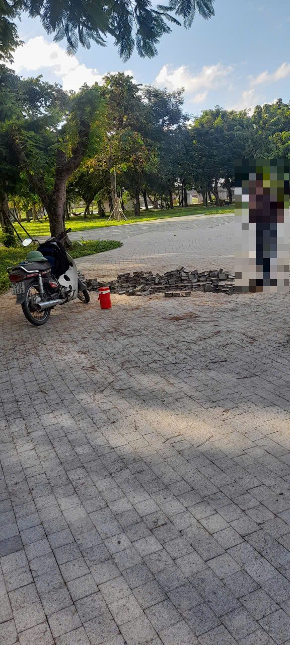 Trung tâm đang xử lý phần gạch ở công viên cồn Dã Viên để không xảy ra tình trạng ứ đọng nước. (Đính kèm hình ảnh)