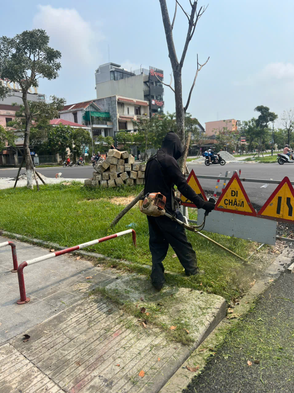 Trung tâm đã bố trí công nhân phồ cỏ tại dải phân cách và vỉa hè tuyến đường Tố Hữu (đính kèm hình ảnh).