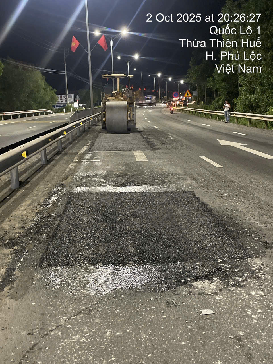 Đoạn tuyến Quốc lộ 1 qua thôn Vinh Sơn mặt đường bị hư hỏng ổ gà. Văn phòng đã chỉ đạo đơn vị bảo hành tiến hành sửa chữa khắc phục xong trong ngày 02/10/2025.