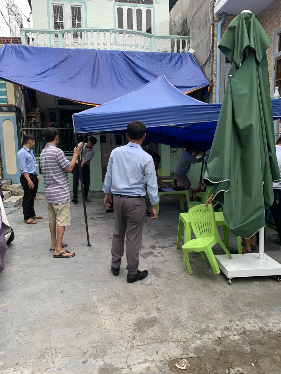 - Dăng bạt, dựng khung sắt, đặt dù che lớn để làm mái che.