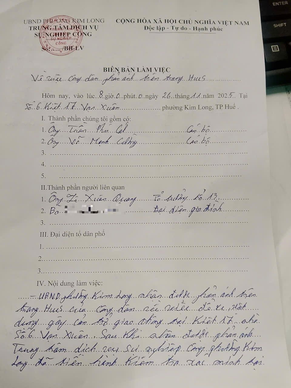 Vấn đề quý Ông/bà phản ánh, UBND phường Kim Long xin thông báo kết quả như sau: