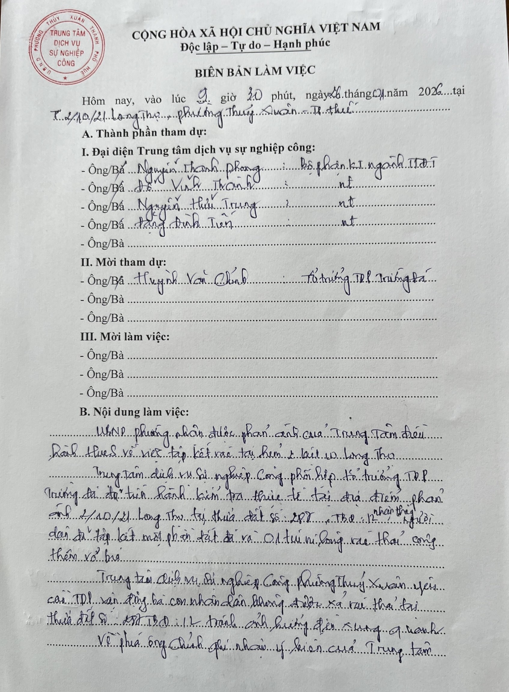 Vấn đề quý Ông/Bà phản ánh, UBND phường đã chỉ đạo Trung tâm Dịch vụ sự nghiệp công phường Thuỷ Xuân (Trung tâm) phối hợp Tổ trưởng dân phố Trường Đá tiến hành làm việc và xin thông báo kết quả như sau: