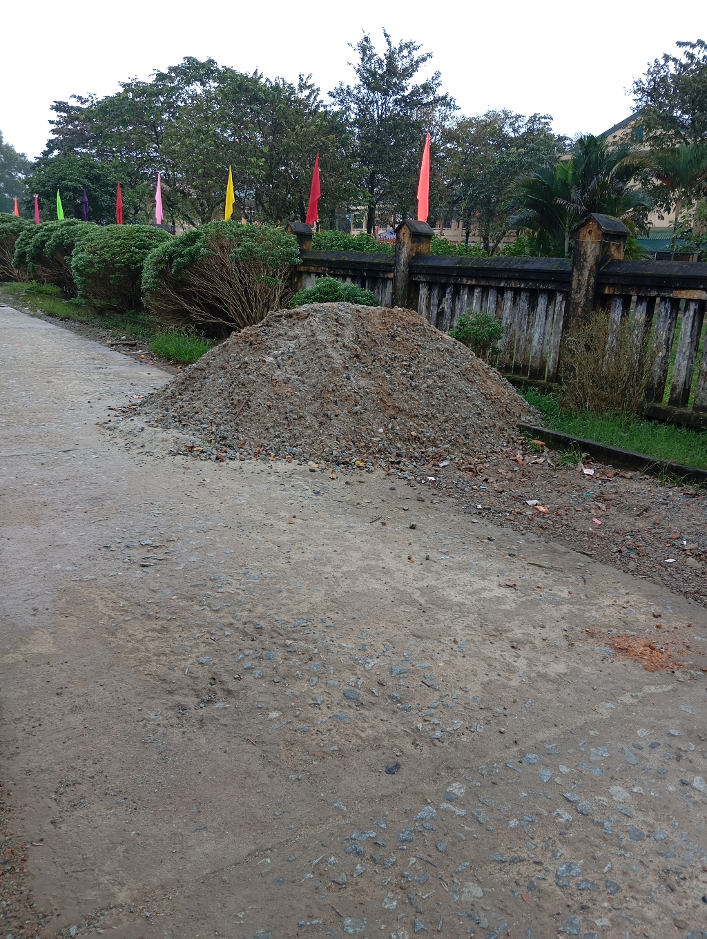 Công trình thi công đoạn đường trước cổng nhà xe Trường THCS Phong An tập kết vật liệu xây dựng lấn chiếm gây ra trình trạng người đi đường và học sinh té bổ. Đề nghị các cấp xử lý.